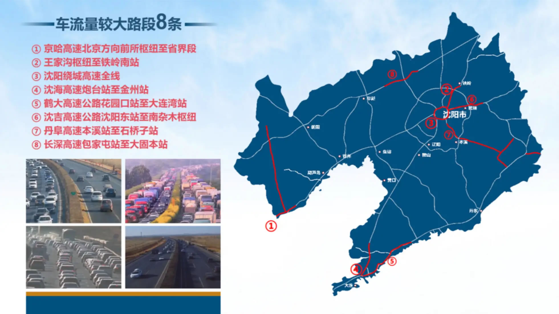 2月14日,记者从辽宁交投高速运营公司了解到,据预测,春节9天,全省高速公路车流量将达到962.6万台次,日均106.9万台次,同比增长36.5%。其中,沈阳、桃仙等15个收费站;京哈高速沈山段全线、沈阳绕城高速全线等8条路段;京哈高速辽中、凌海、盘锦服务区,长深高速那四服务区等10个服务区车流量较大。