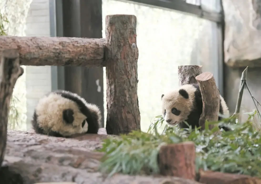 据大熊猫保育员介绍,这对龙凤胎出生于去年8月22日,是“芊金”在沪首次产崽。如今双宝即将满半岁,体重均已突破10千克,各项生长指标良好,体格健壮、性格活泼,已掌握独立攀爬、奔跑、饮用盆盆奶等技能。