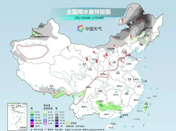 后天,内蒙古东北部、东北地区大部、新疆南疆盆地和北部、西藏东部和南部、甘肃东部、宁夏南部、山西南部等地部分地区有小到中雪或雨夹雪,其中,黑龙江北部等地部分地区有大到暴雪。西北地区东南部、黄淮西部、江汉大部、江南中西部、西南地区东部、华南北部和西部等地部分地区有小到中雨,其中,湖南西部、重庆东南部、贵州东部、广西北部等地部分地区有大雨。