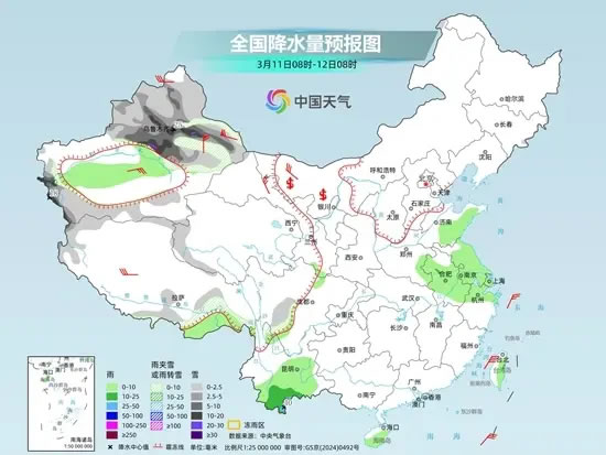 中国天气网提醒,此次降水过程影响范围广,多地雨雪天气较强,公众请及时查看天气预警预报信息,做好防范措施,出行注意交通安全。