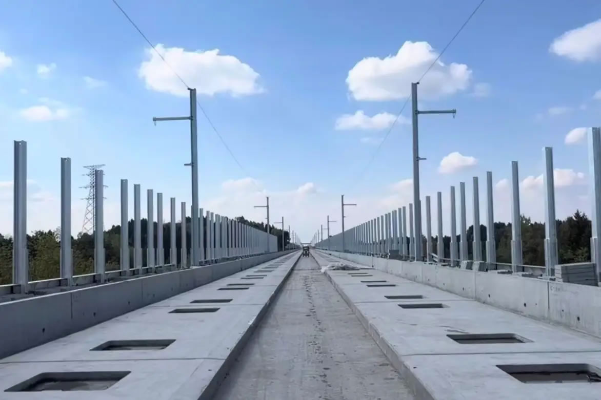 据了解,成渝中线高铁简阳段全长约36.6公里,途经赤水、石桥、石钟等7个镇街,其中无砟轨道铺设约24.52公里,完成无砟轨道铺设后将进入钢轨铺设期,整个简阳段将于今年5月底完成所有的铺轨工作。