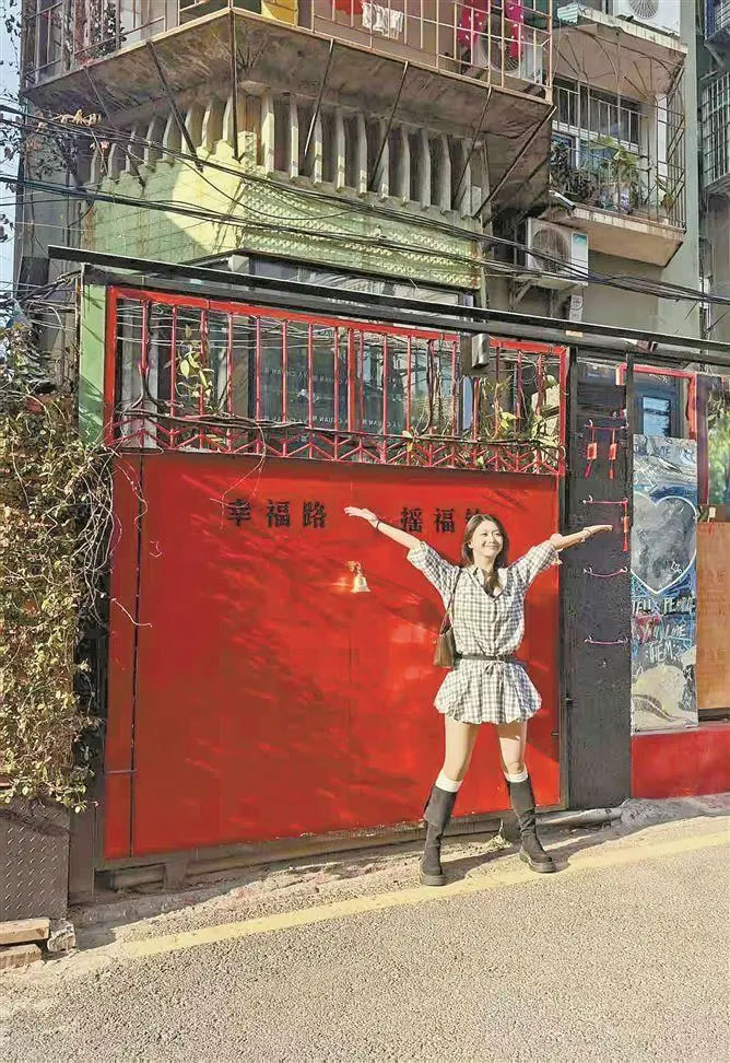 游客打卡幸福路并留下美照。(本报记者杨霞瑜 摄)
