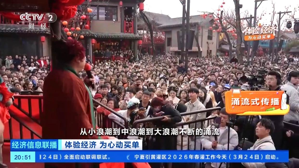 但流量来了,留多久也很关键。专家表示,体验经济重在体验,强在经济。景区在打造沉浸式互动场景的同时,还要整合拉动二次、多次消费。城市范围内,同样需要打造文旅一张网,网住、留住游客,创造更大的经济价值。
