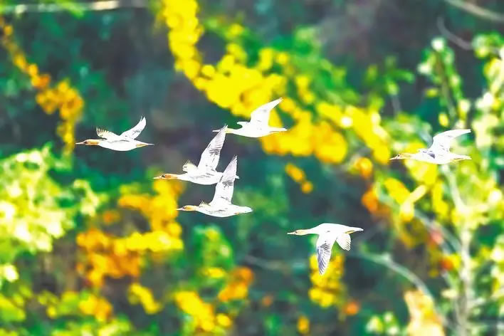 本次越冬水鸟调查覆盖全省120个湿地,总面积达4956平方公里。监测数据显示,本次调查记录的20种国家重点保护鸟类中,包含中华秋沙鸭、青头潜鸭、白鹤、白头鹤、黑鹳、东方白鹳、黑脸琵鹭等8种国家一级保护鸟类。其中,中华秋沙鸭越冬数量达507只,东方白鹳881只,青头潜鸭541只,种群数量与分布范围均创下历史新高。小天鹅、鸿雁、紫水鸡、灰鹤、白琵鹭等12种国家二级保护鸟类广泛分布于全省各湿地,其中小天鹅种群数量达50156只,占重点保护水鸟总量超五成,成为湿地中最常见的珍稀水鸟。