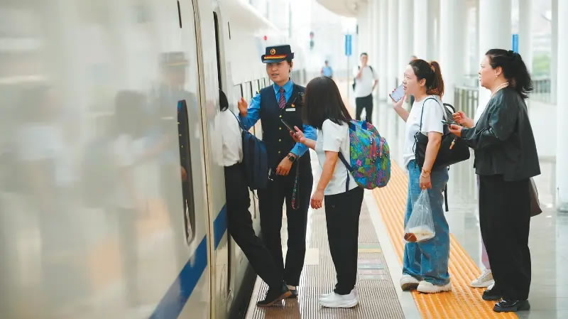 当日,龙岩站候车大厅内暖意融融,不少旅客早早抵达等候,满怀期待地准备搭乘首趟提速列车。旅客陈红钗难掩喜悦之情,她表示,动车提速切实减少了大家的旅途耗时,出行变得十分便捷,自己在买票时偶然发现提速信息,便特意选择了这趟列车。从事商贸工作的旅客吴迪也坦言,以前往返两地需耗时三个多小时,抵达时通常已至下午,此次提速极大便利了经常往返两地的生意人,能有效提升事务处理效率。龙岩站客运综合班组长姚凤君介绍,此次提速不仅大幅缩短了运行时间,更优化了发车时段,龙岩至福州9:19发车、11:38抵达,福州至龙岩18:20发车、20:39抵达,精准贴合群众通勤、探亲、旅游、求学等多样化出行需求,让便民服务更有温度。