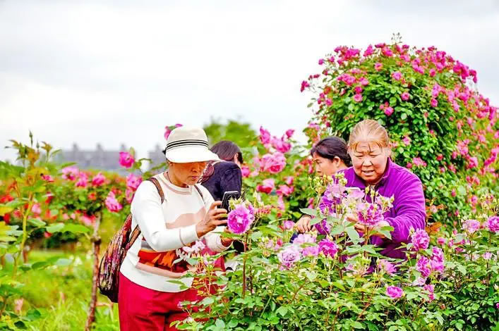 “今天周末,花园内客流量超过一万人次。”4月26日,月季花园现场负责人说,这两天陆续有十几辆大巴组团过来,有小学生春游,还有大学的老师和学生们,以及各地市民,非常热闹。