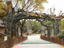 小熊猫展区设置有供小熊猫攀爬的假树、假山、绳梯、秋千等设施,更好的展现了小熊猫的日常行为,提高游客的参观效果。