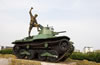 哪里有压迫哪里就有反抗,在整个抗战中,中国人民以主动灵活的游击战术、分散流动的作战形式,利用各种有利的场所和地形给予日军沉重的打击,这一尊雕塑表现了丛林中英勇抗敌的场面)