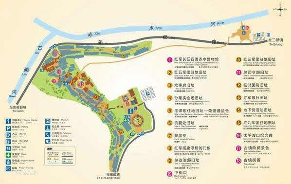 古镇依山傍水,高低错落。现存建筑多为明清时期房屋,采用古代干阑式和吊脚楼等建筑构架。最具特色的长征街、红军街和顺河街结构布局以自然山水为基础,依山就势,街道与建筑依据地形呈“之”字形蜿蜒水平伸展;随着社会的进步,沿赤水河边崛起一座座高楼,形成一个个新的贸易集市区;3公里步游石阶呈“Z”形连接和新街。新街建有2000平方米的纪念馆;1800平方米纪念广场,纪念馆外广场有11尊散落式红军圆雕和浮雕。