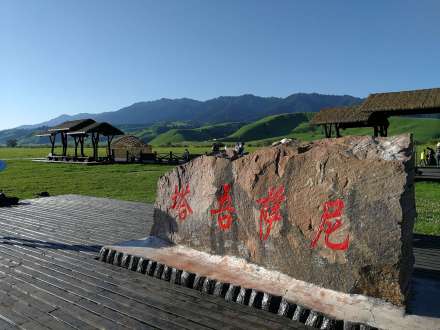 哈萨克语为草原会客厅,是古时候草原民族商量重大事宜的地方,现为景区河谷草原线路的综合服务区。可供游客体验骑马、射箭、民族服装留念、古道马车、草地摩托车、住宿、直升机观景等娱乐项目、餐以及住宿服务。