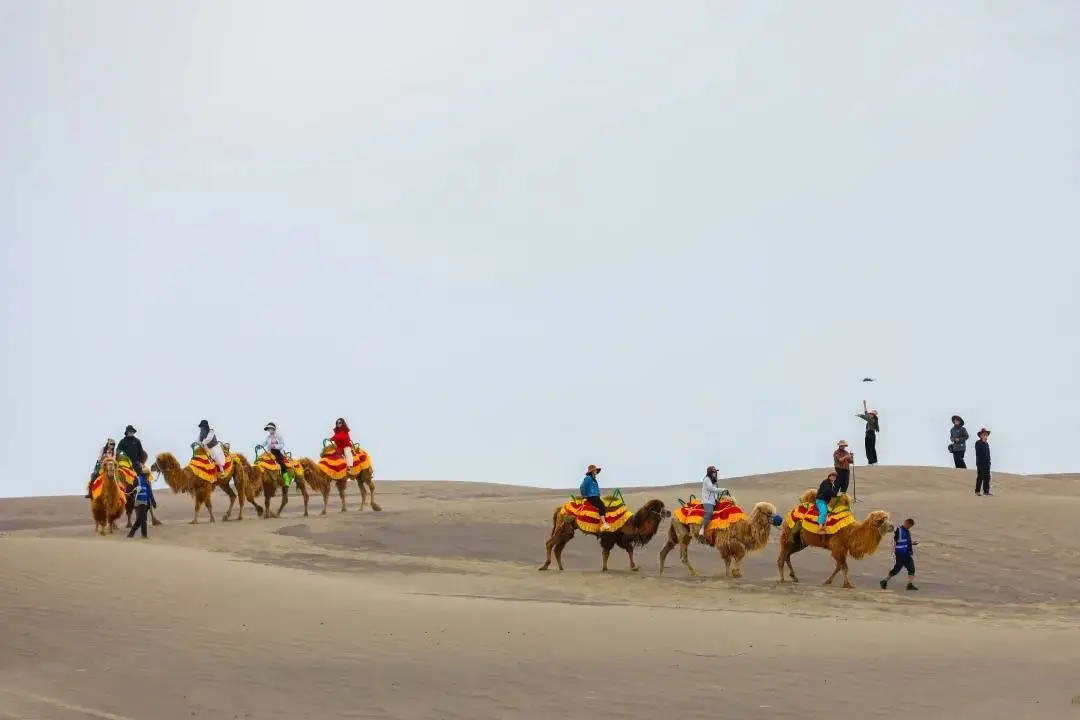 游客在木特塔尔沙漠体验骆驼骑行 (马海玲 摄)