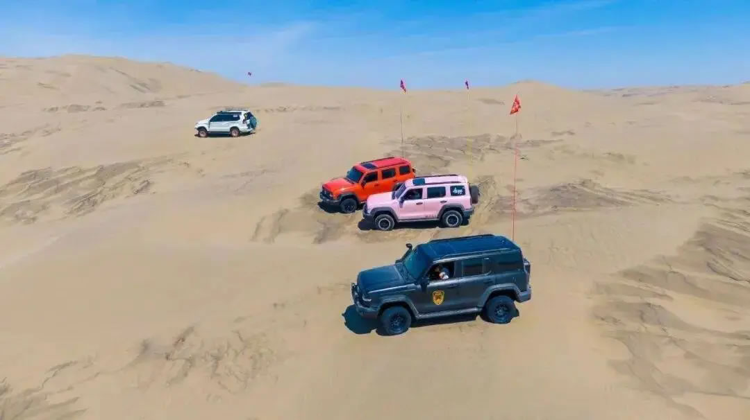 越野车穿梭在木特塔尔沙漠中 (马海玲 摄)