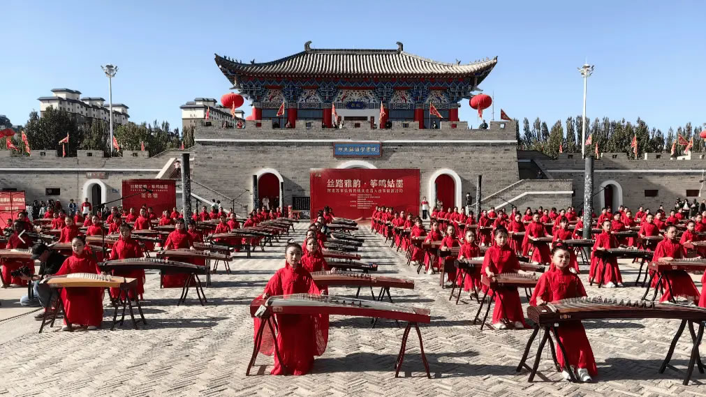 10月12日,新疆阿克苏市以“丝路雅韵·筝鸣姑墨”为主题,举办弘扬中华传统文化百人古筝展演活动。
