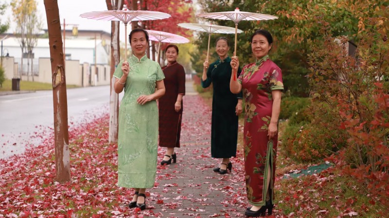 小镇的雨,是天地间最奇妙的调色盘,它懂得用丰富的色彩调和季节的轮回。打湿银杏时,雨便成了金黄;洒落枫树时,雨便成了火红;浸润松柏时,雨又化作浓绿……长街、小路被洗的油亮,早落的黄叶,粘在湿漉漉的石面上,像一枚精致的书签,应和着“秋雨梧桐叶落时”的意境;路上的行人并不匆忙,而是踏着雨声的节拍,在“斜风细雨不须归”的悠然中,邂逅墙角那丛“菊散金风起”的绚烂。偶有身着旗袍的女子,撑一把油纸伞,在飘落一地的红枫叶上款款漫步。那身影穿过雨幕,恍若从水墨长卷中走出的意象,在现实与梦境之间翩翩起舞;雨声里飘来山居食堂的暖香,水汽与雨雾在空中交融,织就“寒夜客来茶当酒”的温润时光。