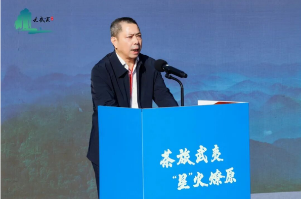 武夷山市政协党组书记、主席裴福海先生开场致辞。他指出武夷山作为"三世遗"叠加、"两公园"辉映的宝地,具有发展茶文旅产业的独特优势。武夷山市将全力支持茶足径、世界红茶小镇及万里茶道起点小镇项目建设,持续优化营商环境,为来武投资企业提供全方位服务保障。
