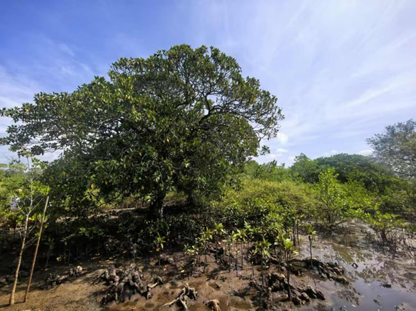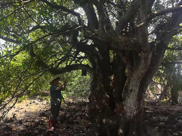 在铁炉港红树林自然保护区,4公顷面积孕育了500多株珍贵的古红树,其中包括世界濒危物种、国家一级保护野生植物红榄李。该保护区内的9株原生红榄李构成了国内最大的红榄李古树群落,也是该物种在全球范围内重要的天然分布地。