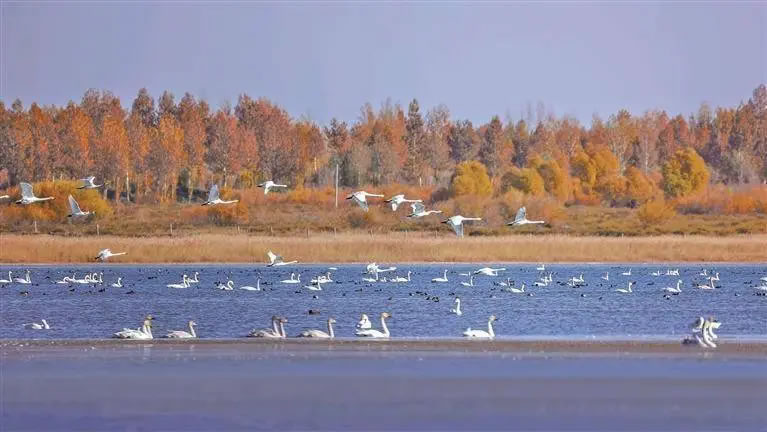 党大朋介绍,随着生态环境持续改善,这里已成为候鸟迁徙途中的重要补给站和栖息地。“这里目前已记录到的鸟类超过150种,包括灰鹤、大天鹅、白鹭等国家重点保护鸟类。随着迁徙高峰即将到来,会有更多候鸟陆续抵达。”党大朋说。