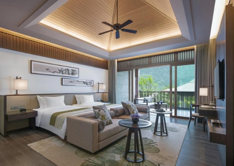 若向往与山林万物共呼吸的隐逸,天目山都喜天丽酒店便坐落于天目山山麓的绿意深处。这里依山而栖,推窗即见连绵竹海与参天古木,每一次呼吸都能吸入高达13万/cm³的负氧离子。酒店将泰式殷勤好客与江南山野灵气相融合,既可漫步幽径聆听溪涧与鸟鸣,亦可在沉浸自然的客房中静享远离尘嚣的安宁,身心皆被纯粹自然温柔包裹。