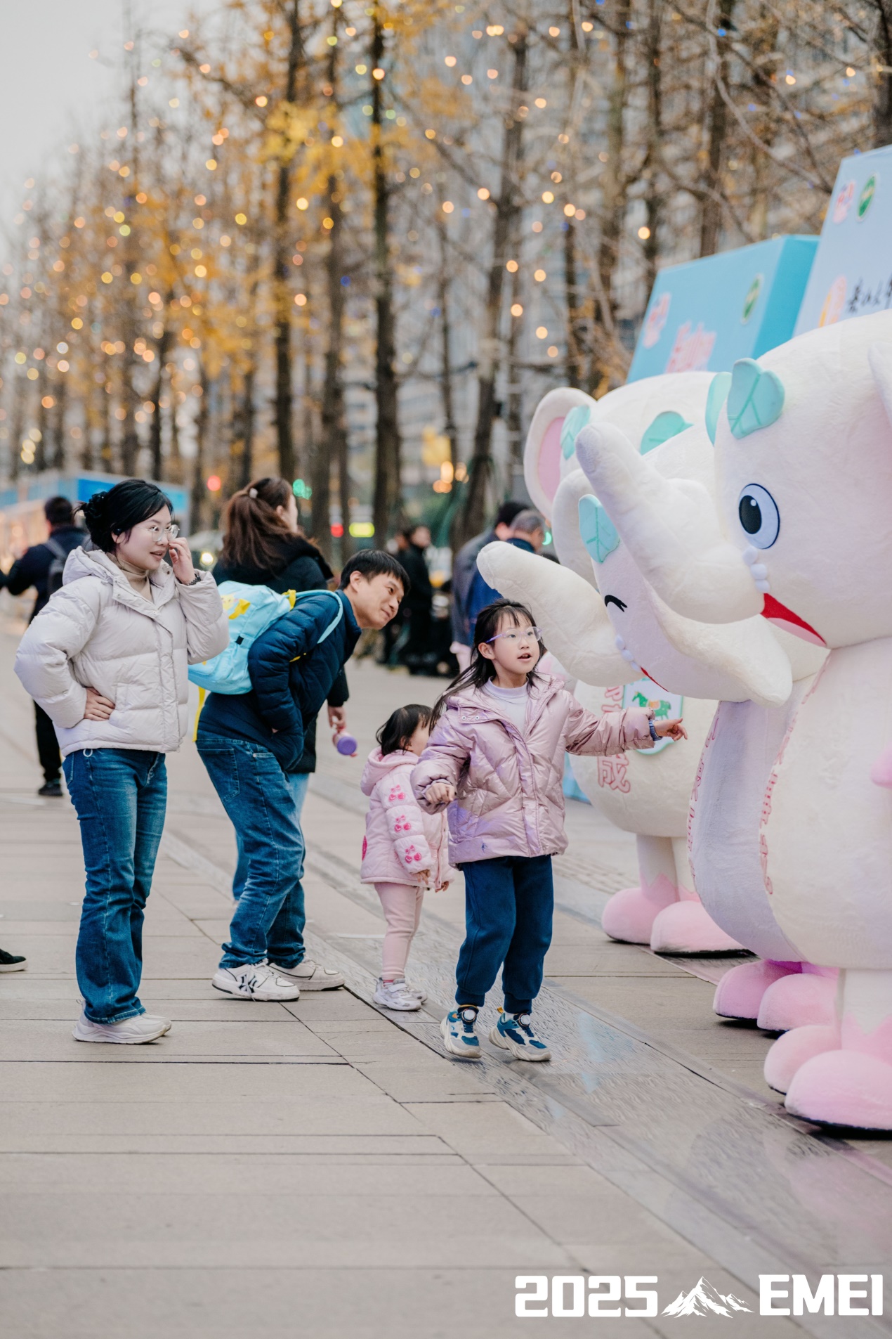 此次交子大道福象巡游,是第27届峨眉山冰雪温泉季的精彩开篇,后续更有超多重磅活动轮番登场,持续点燃整个冬季的文旅狂欢热潮,为全球游客献上一场无与伦比的冬日盛宴。元旦、春节假期,小福象将再度强势集结,延续萌趣狂欢,让节日氛围愈发浓厚;同步启动极具情怀的“全球寻人”计划,全力寻觅1999年在峨眉旅游拍照的游客,以老影像搭建时光纽带,唤醒共同的美好记忆,掀起一波回忆杀;跨年夜至元旦期间,峨眉山金顶还将上演福象快闪舞、非遗武术“会武”互动等精彩内容,传统与潮流碰撞,解锁冬日全新体验。目前,面向全球游客的诚挚邀约已正式发出,这个冬天,诚邀各界友人奔赴峨眉山,赏金顶绝美雪景、泡养生温润温泉、品地道乐山美食,沉浸式感受冰雪与温暖交织的独特魅力,开启一场终生难忘的冬日狂欢之旅。