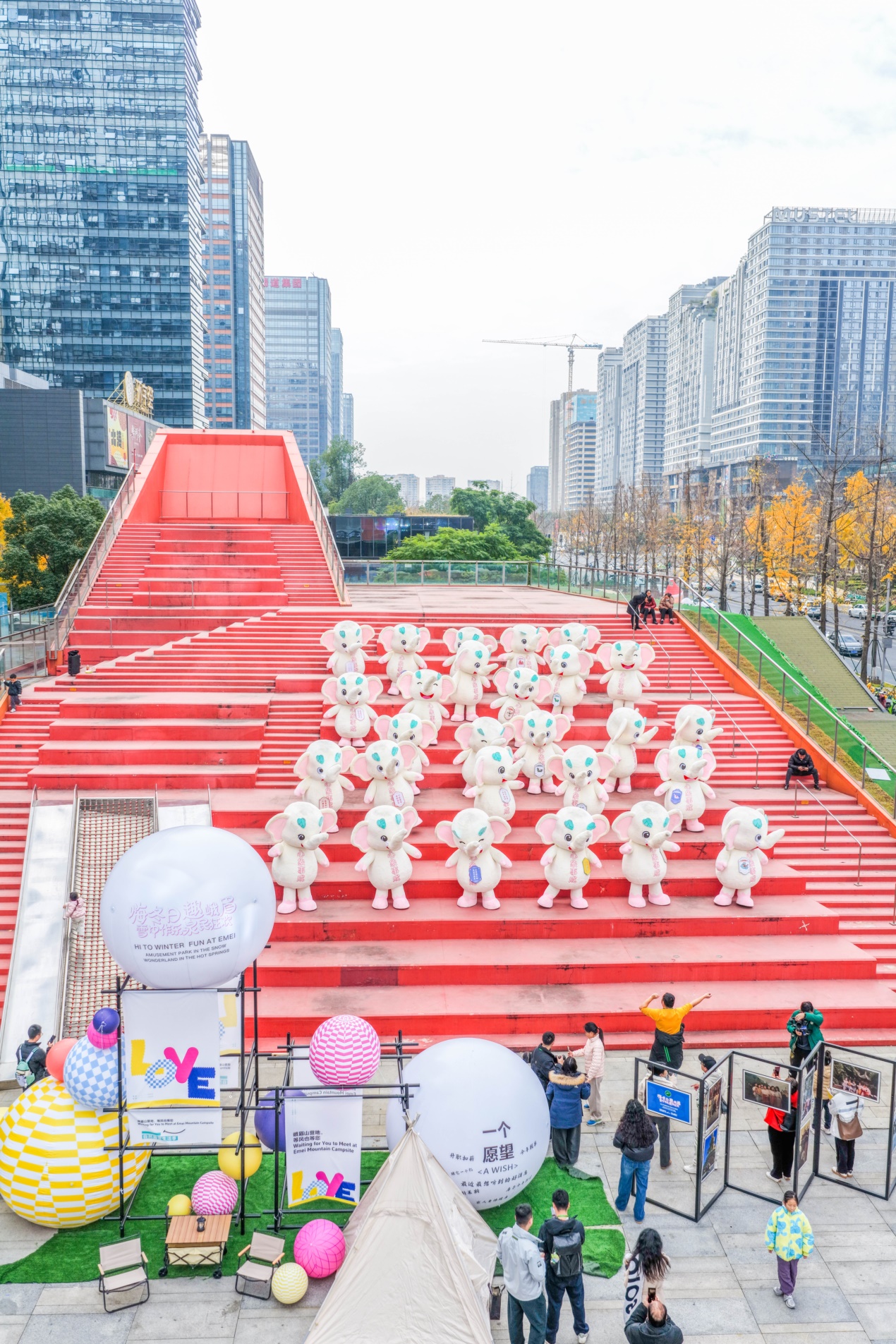 此次登陆成都的“福象巡游”,堪称冬日文旅盛宴的点睛之笔,其文化内核源自峨眉山极具代表性的祥瑞符号——六牙白象。圣洁白象焕新蜕变萌趣福象六六,依托“象”与“祥”的谐音之妙,圣洁庄重的六牙白象幻化身为萌态十足的小福象,既延续了白象承载的吉祥庇佑之意,更将“峨眉耍雪・心象事成”的内涵诠释得淋漓尽致,成为冬日里最治愈的祥瑞福气天团。“耍雪”是峨眉山冬季独有的极致浪漫,金顶皑皑白雪的圣洁壮阔、林间戏雪的肆意欢腾,是镌刻在每个人心中的冬日终极向往;“心象事成”则暗藏满满期许,饱含人们对冬日美好景致的热切期盼,以祥瑞之气传递祝福,寓意奔赴峨眉耍雪寻福之人,皆能心愿顺遂、万事胜意。27只小福象精准复刻六牙白象的灵动神韵,从仙气缭绕的峨眉仙山走进烟火繁盛的都市街巷,让仙山的静谧禅意与都市的热闹活力完美交融。