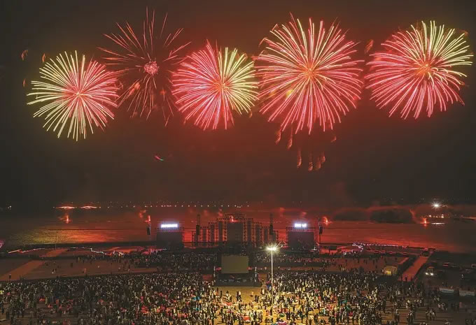 2025年12月31日,“南京慢城跨年音乐嘉年华”在高淳固城湖水慢城举行,为游客呈现一个与众不同、记忆深刻的跨年之夜。此次活动吸引了多达25000人齐聚于此,现场热闹非凡。(邵丹 摄)