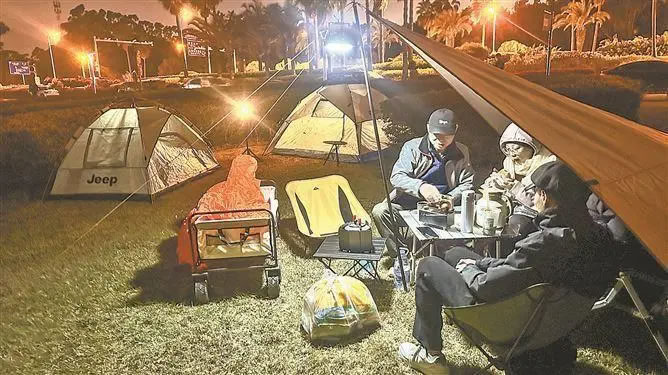 跨年夜的同安环东浪漫线,露营热潮伴着夜色升温。