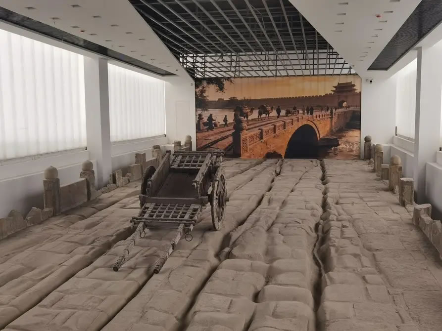 走进上下两层的遗址馆,人们在上层可看到镇远桥历经数百年车轮碾压而形成的车辙。走到下层,一座完整的拱形石桥便立刻跃入眼帘,穿桥洞而过,可近距离欣赏到镇远桥的桥拱、桥砖、桥钉等细节。