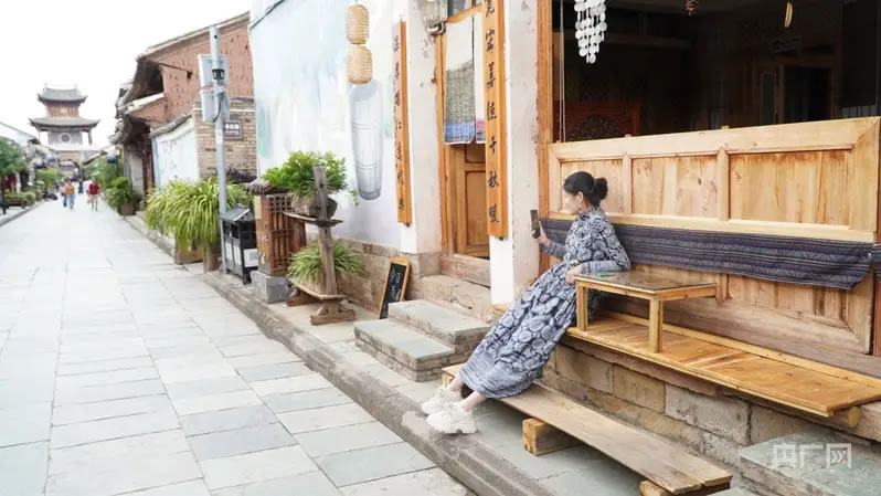 大理巍山,游客在路边休息(央广网记者 魏文青 摄)