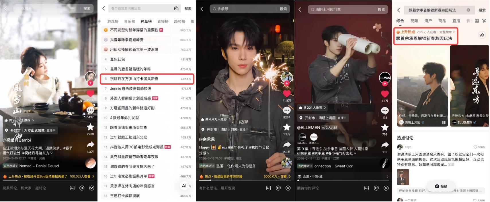 想要在春节这个信息爆炸的节点占领用户心智,必须拥有足够坚硬的内容抓手。在开封,万岁山与清明上河园两座底蕴深厚的景区,选择了与明星深度绑定,将“国风”这一宏大命题具象化为触手可及的视觉盛宴。