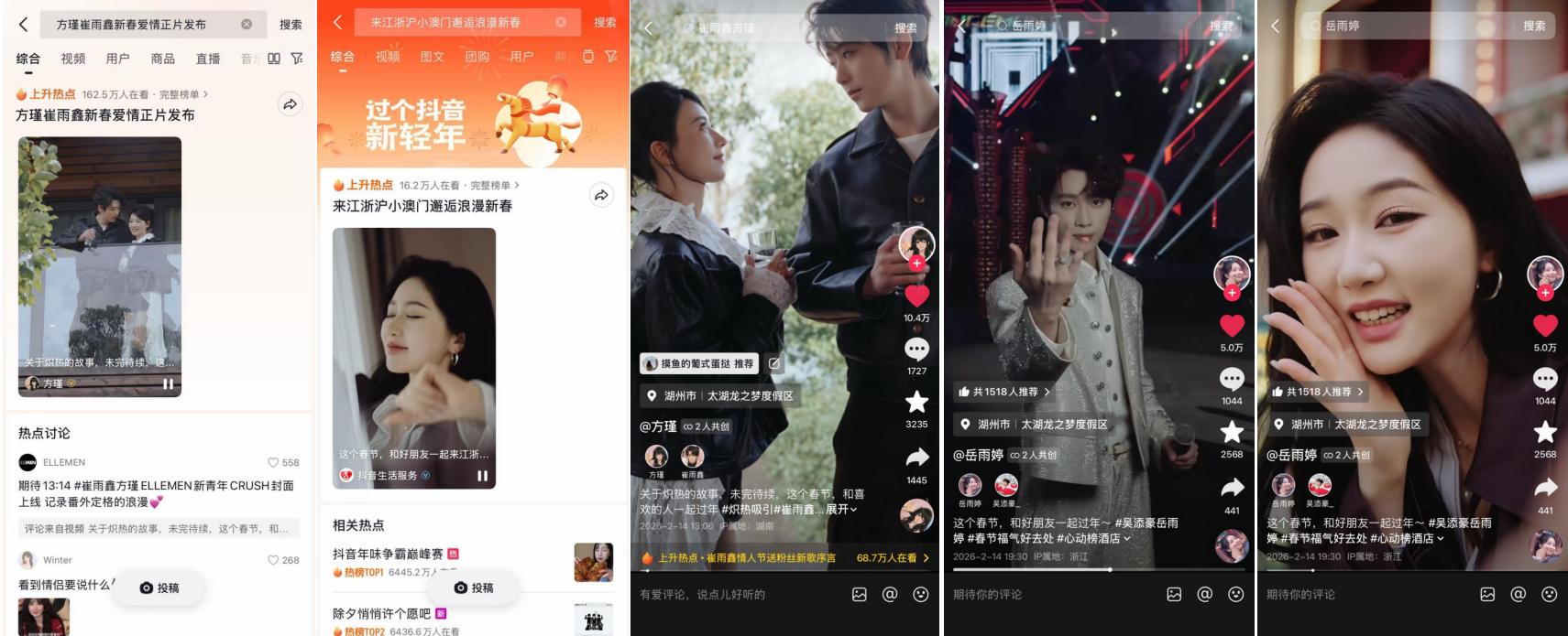 这种做法的精妙之处在于,它利用情绪共鸣完成了一次高级的心理置换。当用户刷到方瑾与崔雨鑫的新春爱情正片时,潜意识里被种下的不是一个景点坐标,而是一种向往的生活方式。当风景不再只是风景,而是承载故事的容器,景区就具备了抵抗同质化竞争的力量。
