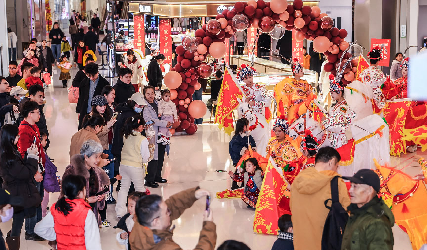 在济南贵和购物中心内,新春雅集、醒狮采青、非遗变脸、音乐雅会、流动诗会等活动精彩呈现,受到市民们的喜爱。