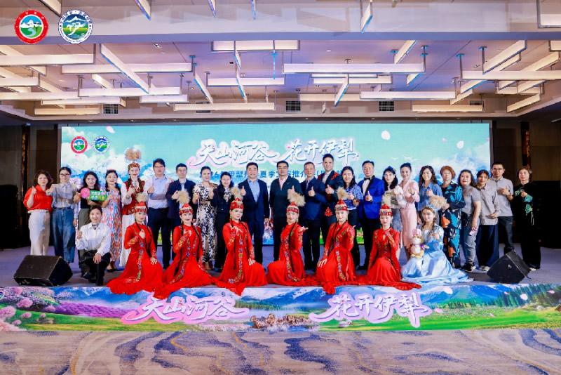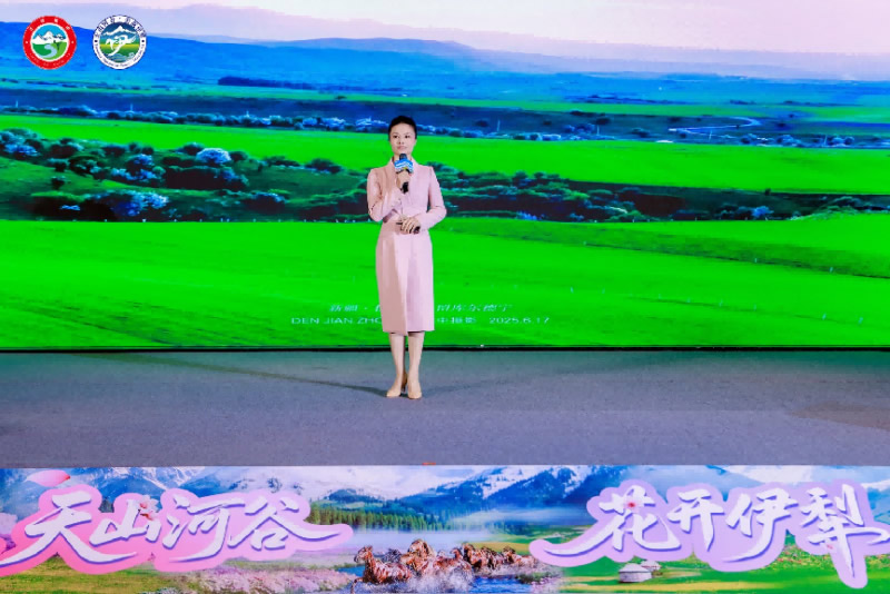 随后,一段充满春日气息的舞蹈《春之乐》为现场增添了灵动色彩。伊犁州文旅推介官率先登场,通过精美的影像与生动的讲述,全方位呈现了伊犁“四季皆景、春夏尤美”的独特魅力——从4月的杏花烟雨,到5月的红花遍野,再到6至8月的薰衣草海洋与百万亩油菜花田,一幅幅如诗画卷令在场嘉宾心驰神往。