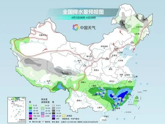 后天,暖湿气流再度加强,南方降雨又会增多、增强。预计,内蒙古东北部、黑龙江大部、吉林西北部和东部、新疆南疆盆地南部、西藏中北部、青海南部、川西高原北部等地部分地区有小雪或雨夹雪,其中,内蒙古东北部、黑龙江北部、西藏北部、青海南部、川西高原北部等地部分地区有中到大雪,内蒙古东北部局地暴雪。重庆南部、贵州东北部、江南大部、华南北部和东部以及西藏东南部等地部分地区有中到大雨,其中,湖南西部和南部、江西南部、福建西部、广东中北部等地部分地区有暴雨,局地大暴雨。