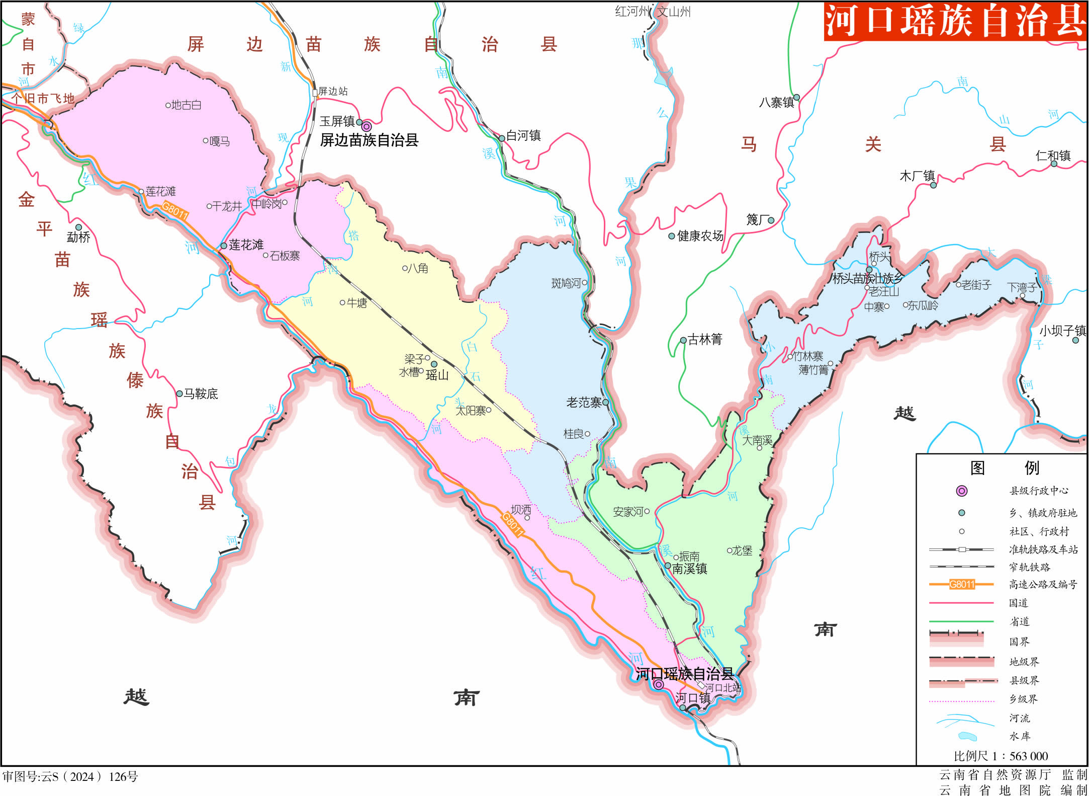 河口瑶族自治县位于云南省红河哈尼族彝族自治州东南部,隔红河与越南老街市、谷柳市相望,是云南省唯一一个以瑶族为主体的自治县。河口县交通非常便利,滇越铁路、昆河公路、红河航道在此形成枢纽与越南对接,是云南省乃至西南地区通向东南亚、南太平洋最便捷的陆路通道。自对外开放以来,河口县大力发展口岸经济贸易,与越南的老街省建立了良好的经济合作关系。全县国土面积1332平方公里,国境线长193公里,全县共辖6个乡镇4个农场。河口瑶族自治县常住人口为101971人。