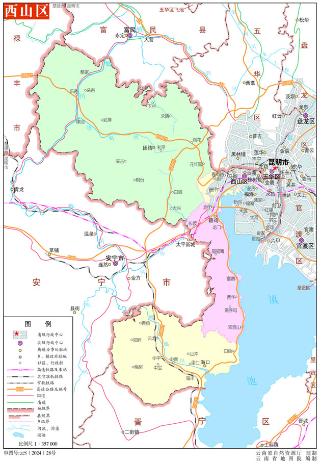西山区,隶属云南省昆明市,是昆明市五个主城区之一,是云南省的政治中心。 [10] 位于滇池西北岸,昆明市西部。东临滇池,与官渡区、呈贡区隔水相望,与五华区土地相连,东北隅与官渡区、嵩明县毗邻。南接晋宁县,西靠安宁、禄丰,北同富民县接壤, 总面积881平方千米。西山区下辖10个街道。西山区户籍人口57.64万人。